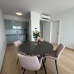Az 56 m²-es Eurovea Tower Apartment Pozsony kényelmes közelségben van olyan városi látnivalókhoz, mint az alig egy 6 perces sétára található New SND.